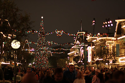 Disneyland looks so beautiful at Christmas time! When you walk in you're greeted with these beautiful decorations!
